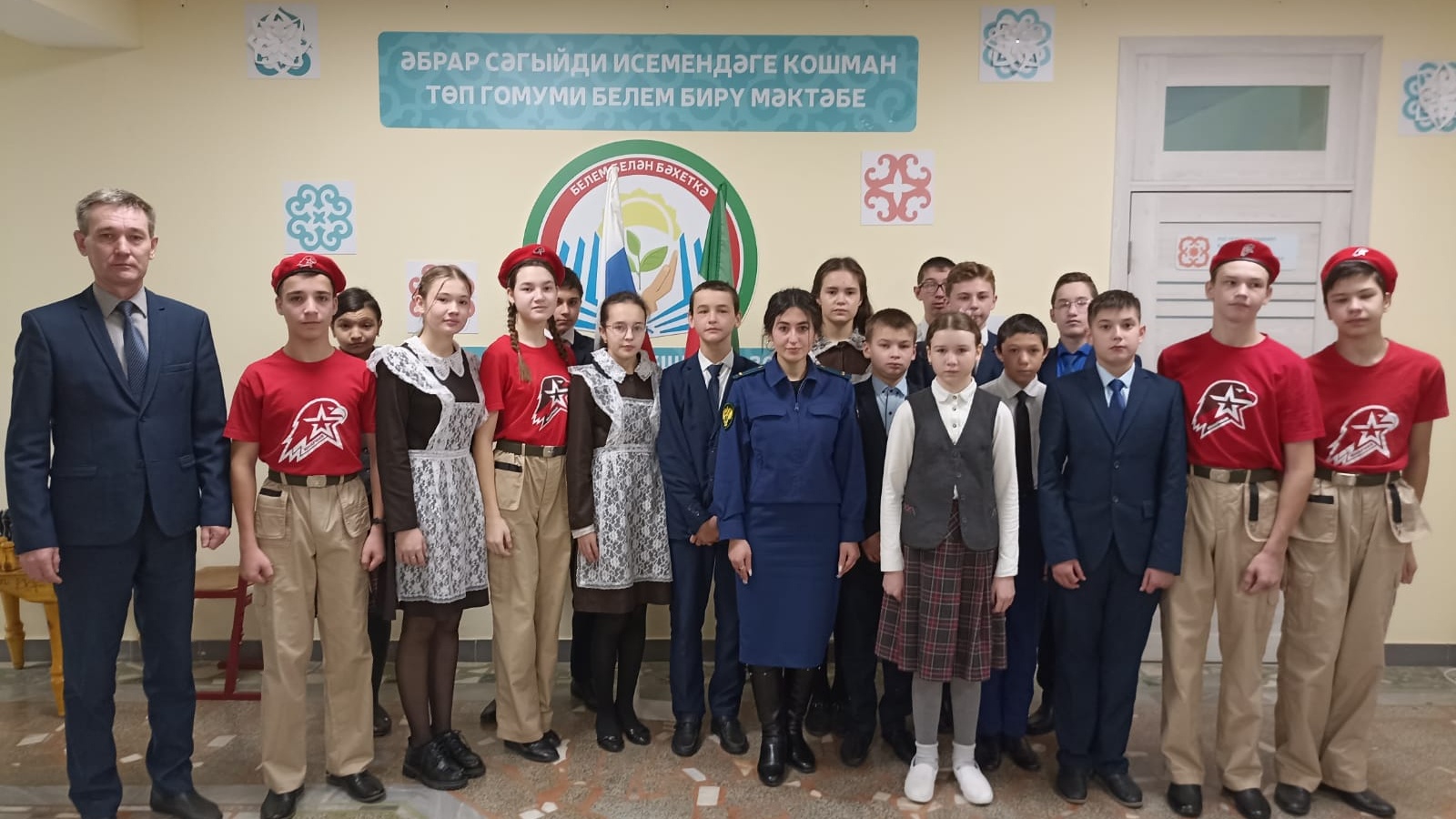 Помощник прокурора Кайбицкого района Сафина Роза совместно с сотрудниками полиции участвовала в Едином республиканском уроке по правовому просвещению учащихся «Мы в ответе за свои поступки» в МБОУ «Кушманская ООШ».