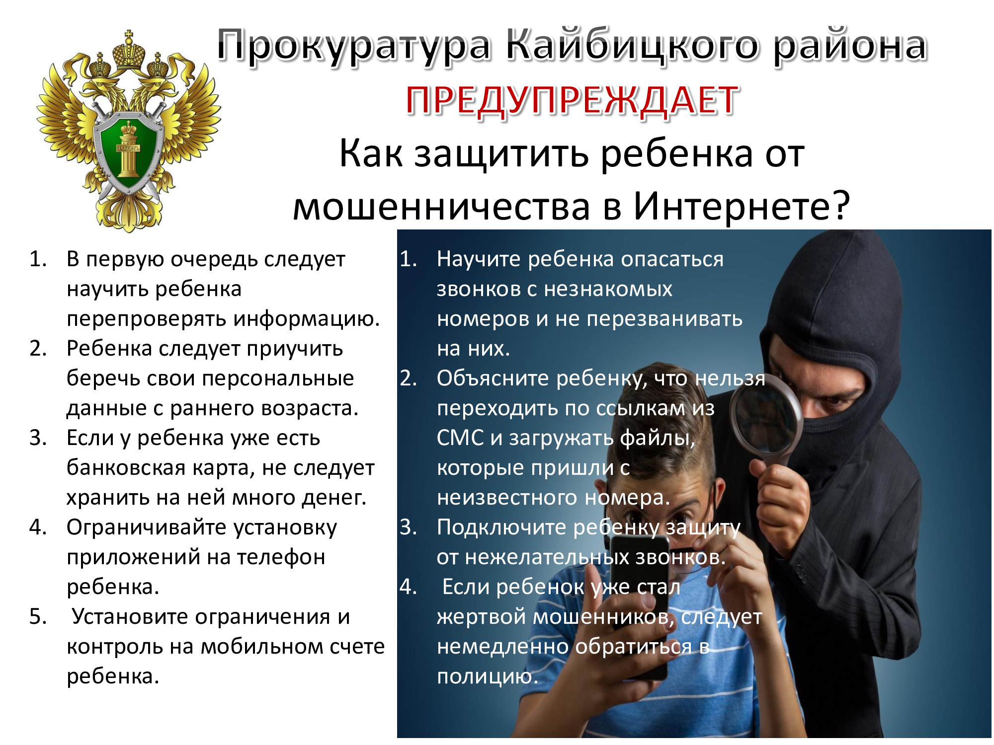 Прокуратура Кайбицкого района ПРЕДУПРЕЖДАЕТ Как защитить ребенка от мошенничества в Интернете?