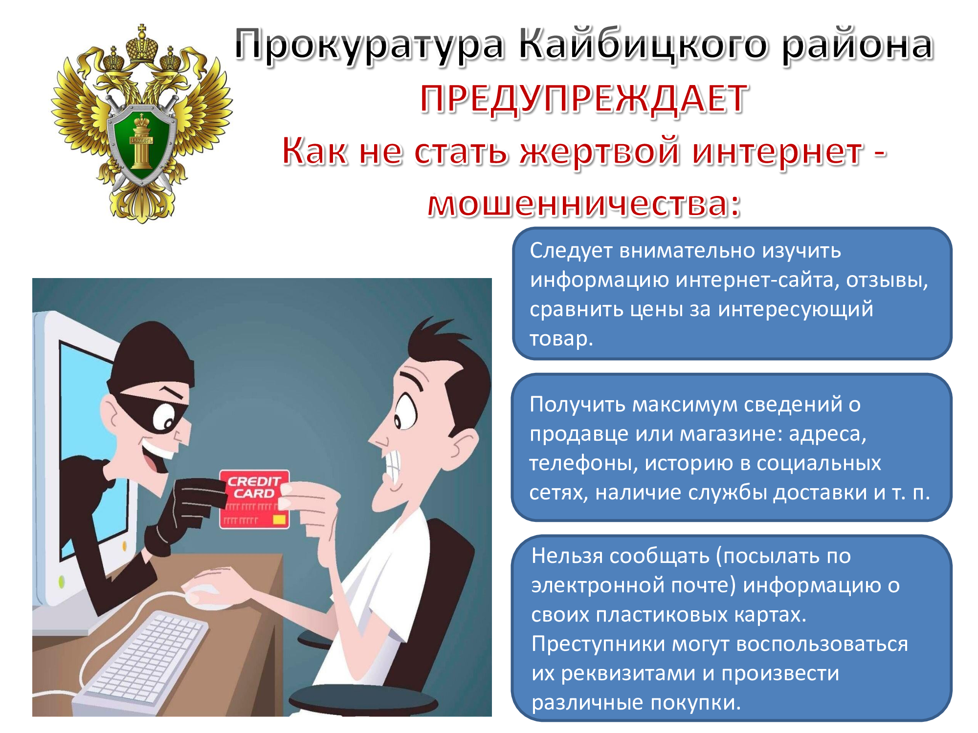 Прокуратура Кайбицкого района ПРЕДУПРЕЖДАЕТ Как не стать жертвой хищения денежных средств, совершаемых с использованием информационно-телекоммуникационных технологий