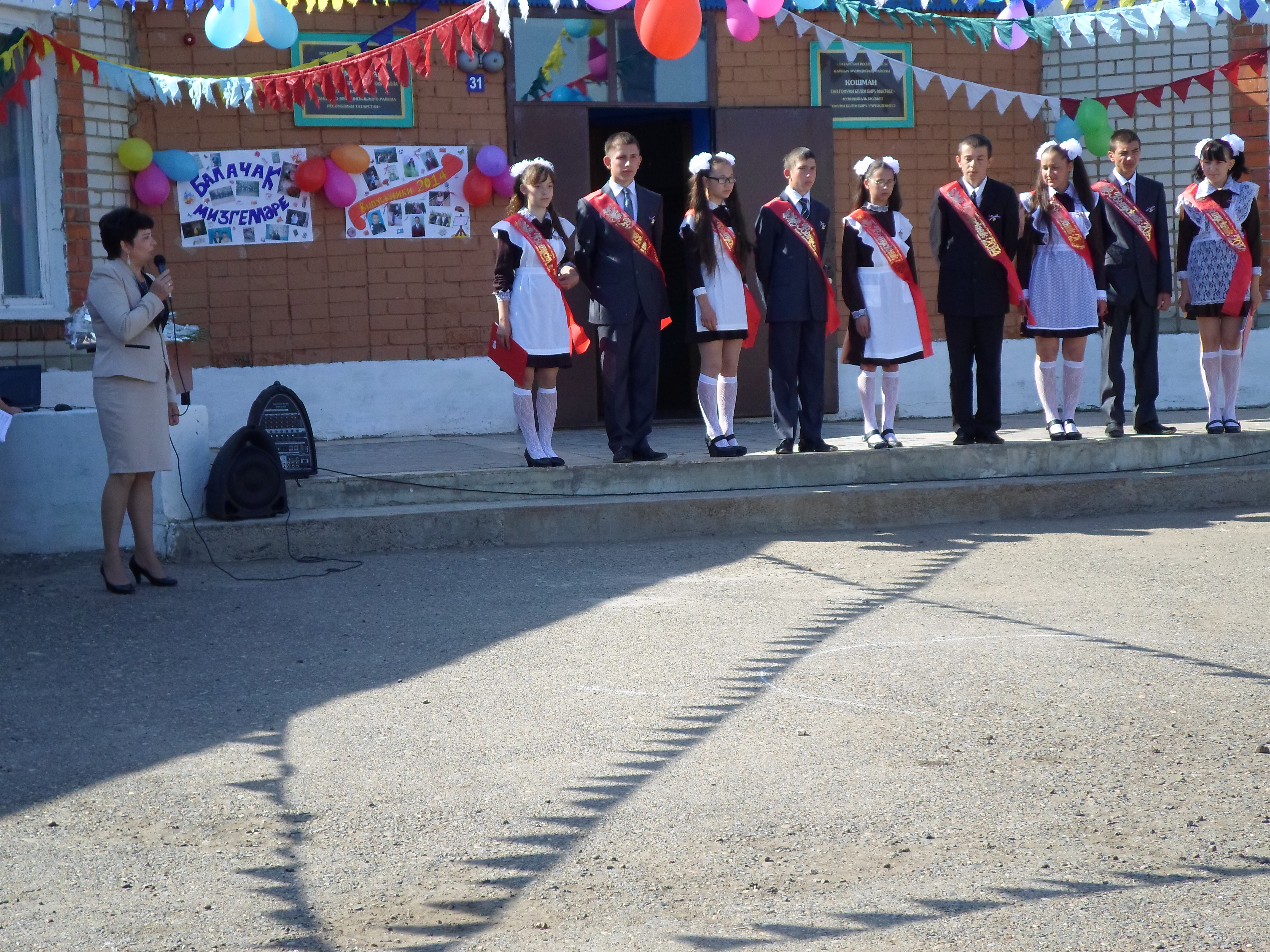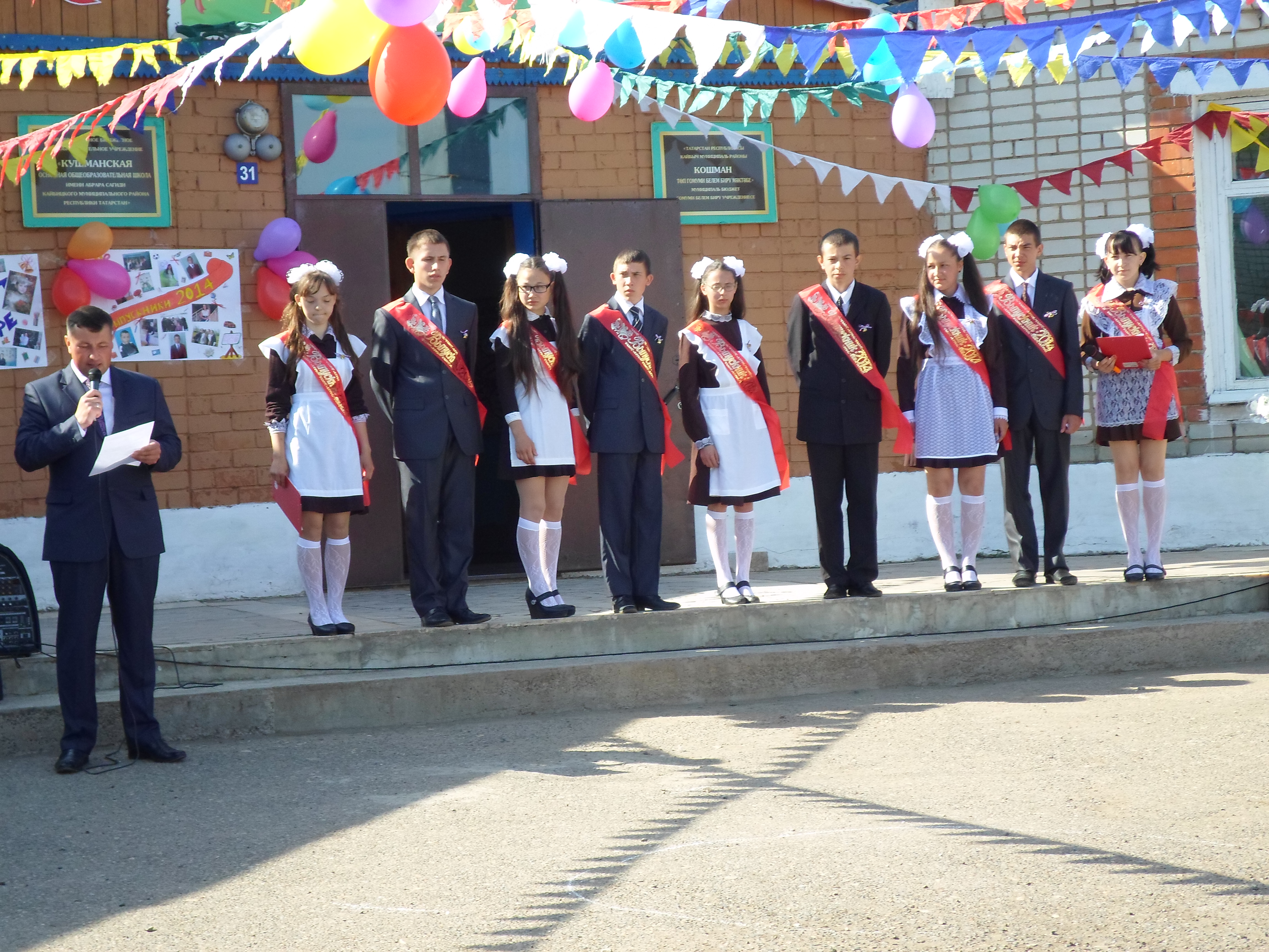 В школе прозвучал последней звонок для девятиклассников.Поздравили их Глава СП Сафина Л.Р. начальник отдела соц.защиты населения КМР Камалиева Ч.Г.,методист РОО Гарифуллина Э.Т. родители, учителя.Окончили школу девять учащихся,впереди экзамены.Желаем им успешно сдавать экзамены, быть всегда гордостью своей родной школы, родителей и учителей.