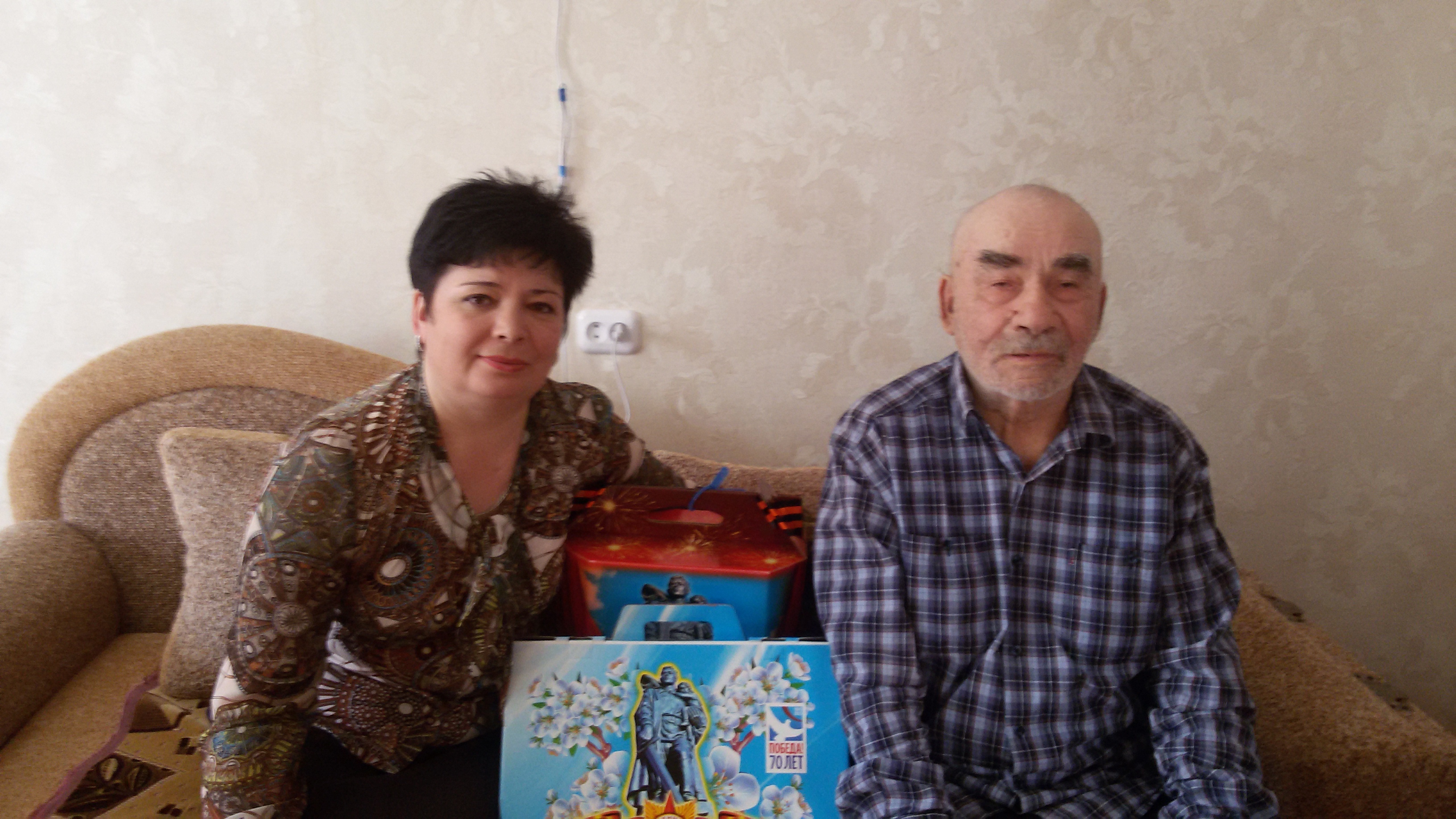 Глава Кушманского СП Сафина Л.Р. вручила продуктовый набор и сувенирную продукцию ветерану войны Мухарбекову Н.Н.,который в настоящее время проживает в г. Казань в квартире ,которую приобрел как ветеран ВОВ.На праздник Победы ветеран приедет домой, в Русаковское лесничество.