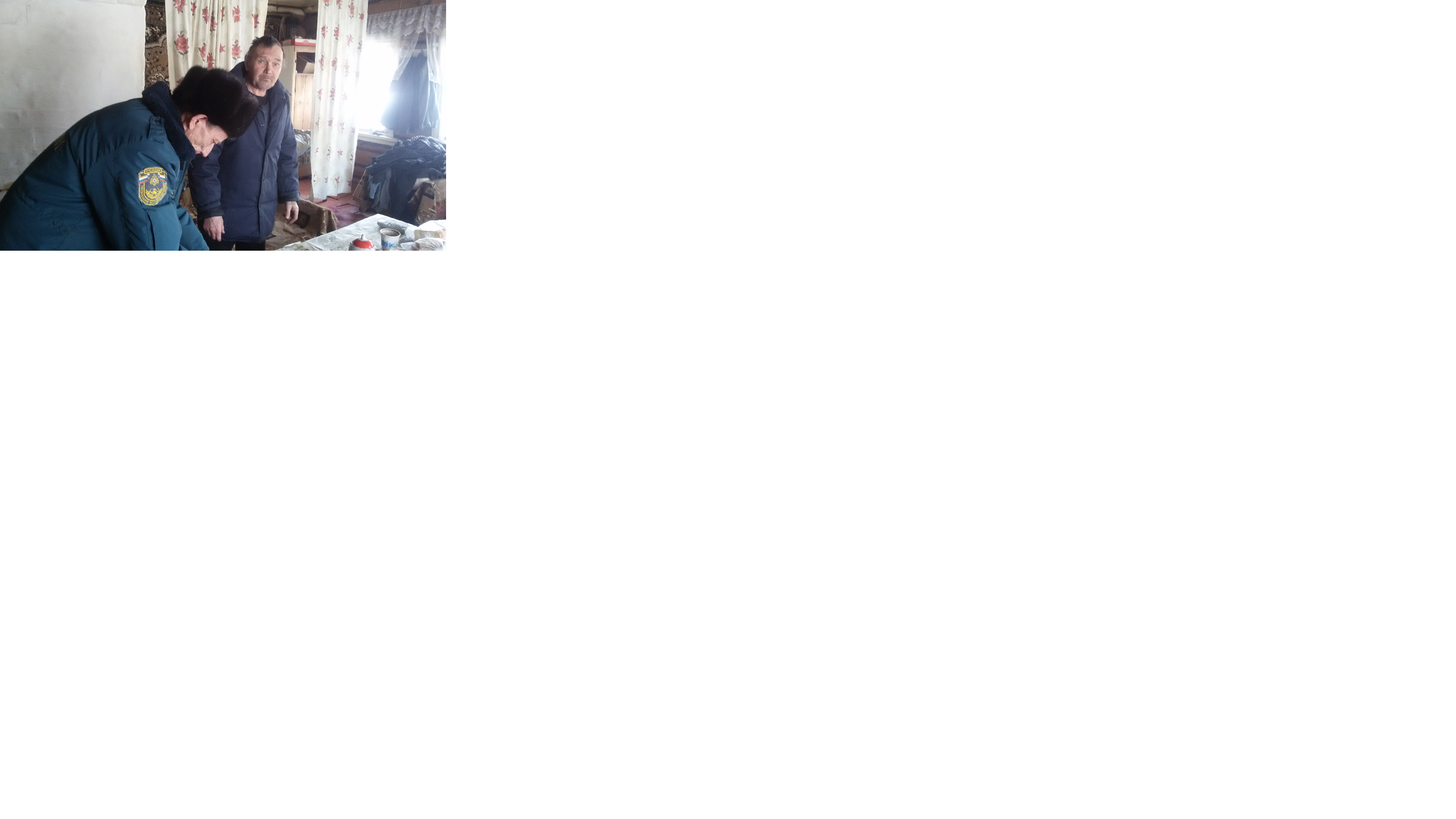 Сотрудники МЧС Сафиуллин Ф.Х. и Шарафиев Ф.С. совместно с главой СП Сафиной Л.Р. проводили обход жилых домов одиноких престарелых и одинокопроживающих мужчин. Во время обхода проверяли состояние электрических проводов, дымоходов, печей. Были выявлены нарушения во всех проверенных домах. Всем под роспись были розданы памятки.