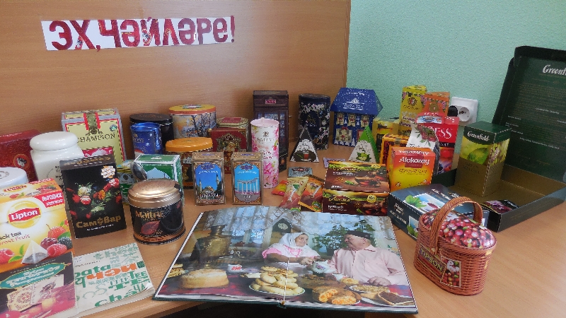 Татар халкы элек-электән утырып сөйләшергә, аулак өйләргә йөрергә яраткан, шуңа күрә чәй эчү бездә шулкадәр популяр. Сөйләшергә яраткач, нишлисең инде-чәй эчәсең.Чәйне һәрвакытта да эчеп була,туйдырмый ул,ялыктырмый. Чәйгә мәдхия җырлап китапханәдә "Эх,чәйләре!"дигән күргәзмә оештырылды.
