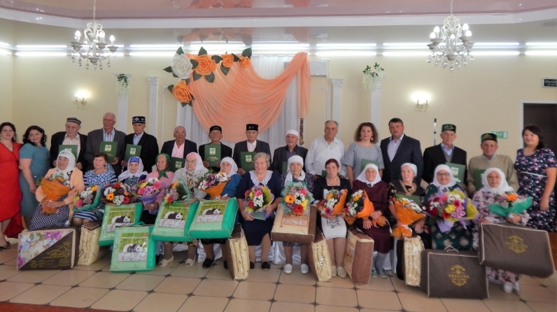 Бу тантанага 50, 55 һәм 60 ел бергә яшәгән парлар чакырылган иде. Безнең авылдан "алтын" юбилярлар Рафик һәм Раузания Хәйретдиновлар катнашты.