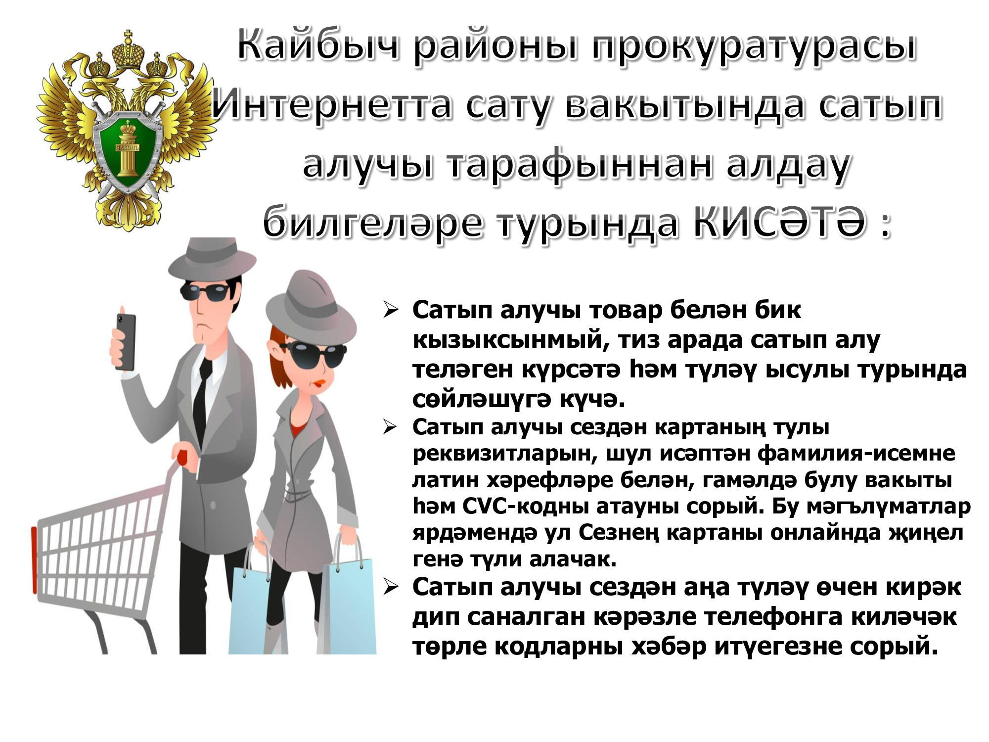 Кайбыч районы прокуратурасы Интернетта сату вакытында сатып алучы тарафыннан алдау билгеләре турында КИСӘТӘ :