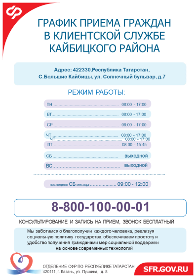 Сорауларыгыз булган очракта сез, 8 800 10 000 01 телефоны аша шалтыратып, Татарстан Республикасы буенча Социаль фондның бердәм контакт-үзәгенә мөрәҗәгать итә аласыз (шалтырату бушлай).